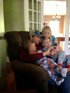 It came a nice rain, so the kids watched some TV at Uncle Tye's. Chandler and Q were so cute all snuggled up with each other.